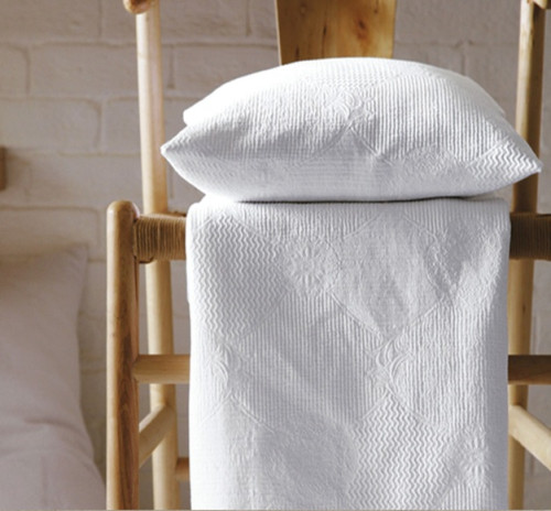 Элегантное тонкое покрывало, украшенное оригинальными вензелями в благородном белом цвете, очень эффектно и стильно украсит интерьер.  Классический образец пробуждения Италии провинции Верона. Покрывало можно дополнить наволочками в таком же дизайне, маленькими 40х40 и большими 60х60. Французская традиция производства текстиля.